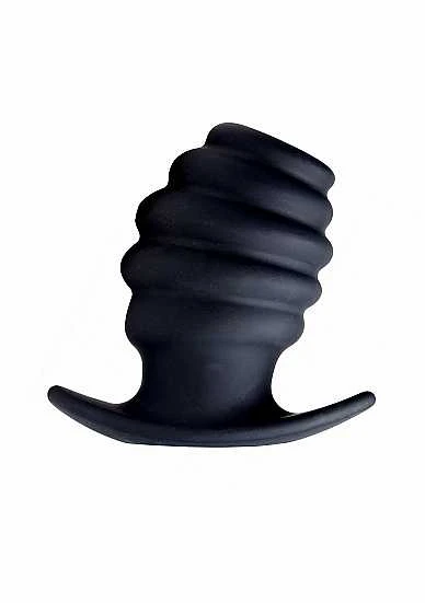 Ribbed for your anal pleasure this hollow butt plug is available in 3 sizes so that you get the fit that is just right! The design features bold ridges that are curved for comfort while they massage your hole. Meanwhile the tunnel in the core allows you to insert an anal-safe vibrator a liquid of your choosing and more! You can even give your partner a peek inside. Curved to hit the spot this plug is great for the prostate but will feel delightful in a female body as well. The ergonomic base allows it to sit comfortably between your cheeks for hours of wear. This unique plug is made of quality silicone which makes it body-safe. The non-porous and phthalate-free material is not compatible with silicone lubricants but is easy to sanitize with mild soap or toy cleaner.