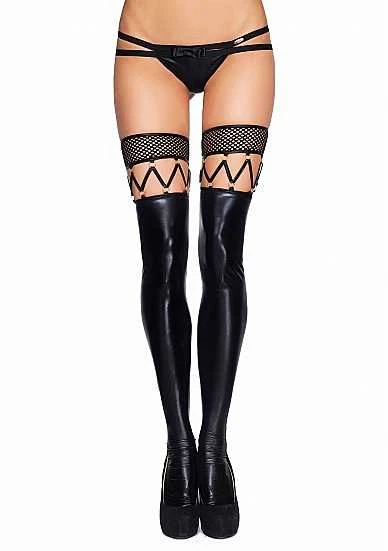 MARICA Wetlook, Fishnet and Strappy Stockings – Black