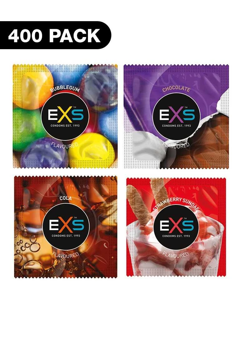 Mix pack of 100 of each the Chocolate, Strawberry, Cola and Bubblegum flavoured condoms