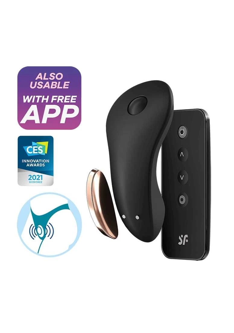 Productinformatie Little SecretDankzij de praktische magneet kan de Little Secret comfortabel worden vastgezet in de slip en stimuleert hij zo discreet de clitoris met krachtige vibraties. Het accessoire is gemaakt van siliconen en kan zowel via de app als via de bijgeleverde afstandsbediening worden bediend. Satisfyer Little Secret: Panty vibrator met afstandsbediening en app-bedieningDe Little Secret van Satisfyer is een echte alledaagse held: De clitorisvibrator wordt met een magnetische clip aan het slipje bevestigd en is daardoor ideaal voor sensuele stimulatie onderweg. De panty vibrator is uitgevoerd in elegant zwart met goudkleurige details en ligt dankzij zijn ergonomische vorm direct op de clitoris. Door zijn krachtige maar fluisterstille vibraties is de Little Secret absoluut discreet. Bovendien inspireert het accessoire met een knuffelig oppervlak van lichaamsvriendelijke siliconen, wat zorgt voor een gladde ervaring met slechts een paar druppels glijmiddel. Zelfs in vochtige ruimtes zoals de douche of het bad stopt het plezier met de Little Secret niet dankzij de waterdichte (IPX7) afwerking.Veelzijdig plezier met de Little Secret – dankzij innovatieve app-besturingDe Satisfyer Little Secret kan zowel via de bijgeleverde afstandsbediening worden bediend als via de gratis Satisfyer Connect App, die beschikbaar is voor Apple en Android. Zo kun je de Little Secret discreet gebruiken in het dagelijks leven of de controle volledig overdragen aan je partner. Met de Satisfyer Connect App kun je ook soorten plezier ontdekken: Maak je eigen trilprogramma’s op basis van de geluiden uit je omgeving of je favoriete afspeellijst.De Little Secret is uitgerust met oplaadbare batterijen die eenvoudig kunnen worden opgeladen met de bijgeleverde USB-oplaadkabel.