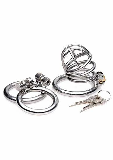 Whether you are putting that penis in timeout or life in prison this elegant stainless steel chastity cage will assert your control and your partners helplessness. Three different sizes of O-rings are included to find a comfortable or uncomfortable fit depending on what your slave deserves. The most unique feature of this device however is the internal locking system. Insert the key into the brass keyhole and turn to straighten out the lock. The lock can then be inserted into the hinge. With another twist of the key your slave is left impotent and trapped until you decide to set them free… if that day ever comes!